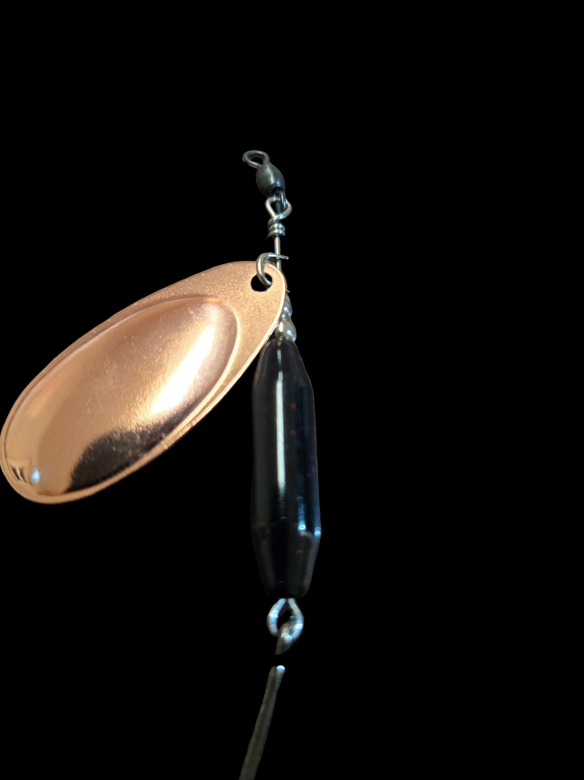Steelhead and spooky salmon love this stealthy copper bladed beauty! Great in clear water.